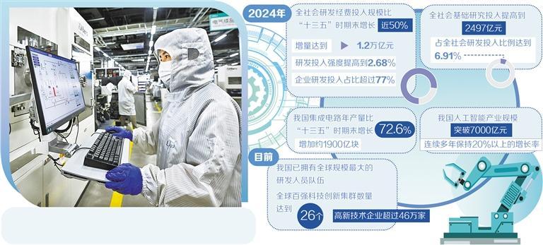 8月7日,Jingian Semiconductor Technology Co.,Ltd.,Ltd。位于Tianjin Binhai的高科技地区,生产研讨会的工作人员正在净化设备。照片:Zhao Zishuo,新华社新闻社记者,如果科学技术蓬勃发展,那么该国就会开花,它将在科学和技术中盛开,该国将得到加强。面对技术革命和全球科学带来的激烈竞争以及在14年级的五年级计划期间,我的国家深入实施了创新促进的发展策略,加速了SC的促进具有智慧和技术独立性和自动改进,并在基本还原研究方面取得了新的进步。科学技术系统。正在缓慢地形成一种新的优质生产力,表明强大的驱动力和对高质量发展的支持。科学技术已经达到了新的水平。 “During the 14th five -year plan, the basic institutional framework for science and technology in my country has been established fundamentally, and the general efficiency of the National Innovation System has been continually improved, which leads to the science and technology of my country that continue to reach new levels,” said Chen Ji, director of the Institute for the Development of Science and Industry, the Strategy for the Development of Sciences and Technology of China.从研发投资的角度来看,我的国家将创新提高到了前所未有的地位和重要性。 2024年,该公司的研发投资规模与第13个五年计划期结束相比,LE增长了近50%,增长了12亿元,研发投资的实力增长到2.68%,随着经合组织(经济合作与发展组织的全国平均水平),超过超过公司超过公司比例超过公司的公司的公司的全国平均水平,超过公司超过公司的公司的公司比例超过公司的公司比例超过公司的比例。超过超过77%的公司的公司。在创新的结果方面,我的国家根据当地情况发展了新的质量生产力,促进了科学和技术创新和工业创新的深刻融合,被打破了,这是lou的创新,与系统整合在一起,与“ Heav”中日益增长的创新高度相遇。主力量的Y武器。“看着星空,中国空间站的“天哥”是完全建造的,并转移到了正常的行动中。“ chang’e 6”从月球后面带回了“本地专业”。向地球上看,世界上的第一个第四代核能工厂,世界上的第四代核能工厂,Shidao的基地,Shidao Base of Shidao of Shidao of Cormercial Ectress of Cormercress of Cormerce the Cormert the Cormertex,并以前又登上了DECTISEX的凹陷。 Fendouzhe从远处看海洋,“探索世界,技术和技术的科学和科学国家,世界,技术和技术的技术和技术,拥有460,000多家高科技公司。超过460,000个高科技公司。该国的全球创新指数的分类是11th和It the World and Intocigication It and It the It and Comention It the It the It the It the It the It the It the It the Comentivic of Condortivic and the It the It the It the It extracigication。主要好处。Onnel,发明专利请求的数量以及《专利合作条约》(PCT)的国际专利申请数量已在世界上首先归类多年。 “从我14日的五年计划开始,我国作为全球创新的关键极点的影响不断增加,为实现高质量发展和高水平的安全提供了重要的支持,” Chen Ji说。 Loongson 3C6000于6月26日促进了高质量开发,在北京推出了由我国独立开发的国家一级生产的新一代加工者。处理器(CPU)是计算机的核心组成部分,并指导几个组件的操作,例如“大脑”。 Loongson 3C6000使用由我国独立设计的教学系统的龙建筑,可以满足多种情况的计算机需求,例如通用计算机科学,智能计算机科学,存储,我ND Instrial Control,工作站等。 “现在,一些中央公司和金融客户开始使用3C6000服务器启动主要的商业系统。” Loongson Zhongke Technology Co.,Ltd。Hu Wewu公司总裁表示,独立创新不仅会改变Loongson的命运。在2024年,与计划期限的第13个时期结束相比,我国家综合电路的年度生产增加了72.6%,大约增长了1900亿元人民币,“中国核”中使用了更多产品。他的眼睛变成了川川河的河岸。 7月26日,2025年世界人工智能会议在上海举行,中国有100多种新产品和新技术“全球第一”和“第一场演出”。作为未来战略和普通技术的领导者,人工智能被认为是塑造新优质生产力的重要引擎。 “有关区域调查的报告中国人工智能的竞争力”表明,在2024年,我的人工智能行业超过了7000亿元人民币,多年来的增长率超过20%。人工智能加速了成千上万行业的赋予,使人们的生产和生活方式彻底改变了人们的经济增长。我的国家的新优质生产力已升至“新的高度”。车辆首次在上一年实现了两位数字的增长。新能源车辆的销售额达到了新车辆总销售额的44.3%。航运业植根于“新的逃脱”。在今年年初,我国家的海军建设量已经完成,从零重量的角度来看,新的订单和手册分别占世界的51.7%,68.3%和64.9%。看着中国的地球,创新行业有很大的冲动。在2024年,与13五年的五年规划期结束相比,我国家的高科技制造业增加了42%,而数字经济中心行业的附加值增长了73.8%,占GDP的10.4%。国家发展与改革委员会执行董事Yuan Da. Chinee Communist Dey的薪酬您已经建立了实现高水平SCI的战略目标ENTIFIC AND TECHNOLOGICAL INDEPENDENCE AND SELF-IMPROVEMENT BY 2035 Fields and New Tracks, Promote Great Leaps in Scientific Technology, and Stand Bravely at the Forefront of New Rounds of Scientific and Technological Revolution and Industrial Transformation, “Chen Ji said. Call of Duty, the horn causes the search. To build a powerful country in Science and Technology, we have established the Central Committee of Science and Technology, restored by the Ministry of Science and Technology, and systematically rebuilt总的来说,我们决心促进对科学和技术扩散法的第一修正案的